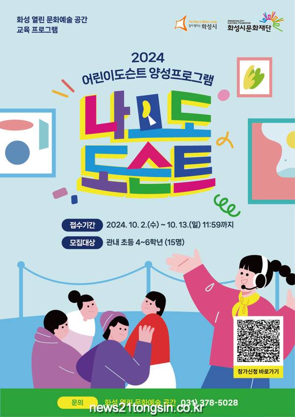 (재)화성시문화재단(대표이사 김신아)이 2024 어린이 도슨트 양성 프로그램 「나도 도슨트!」 2기에 참여할 어린이 교육생 15명을 10월 2일부터 13일까지 모집한다.