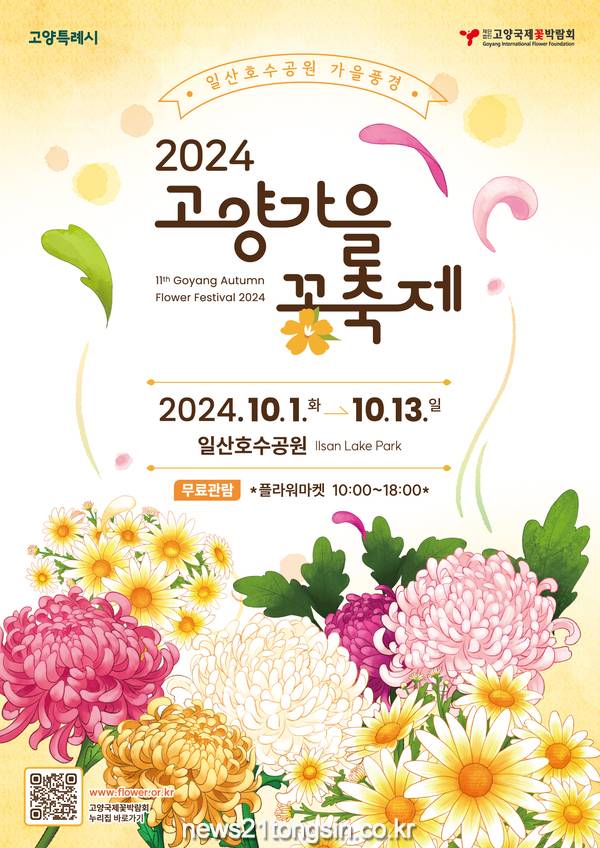 2024고양가을꽃축제 10월 1일부터 13일까지 총 13일간 일산호수공원 고양꽃전시관 일원에서 펼쳐지며, 입장료는 무료이다.