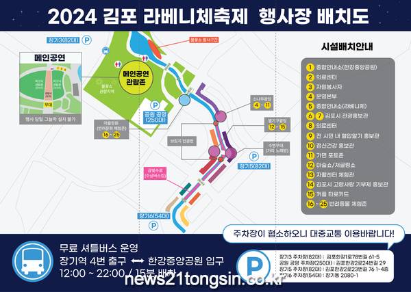김포시(시장 김병수)는 가을을 맞아 오는 10월 12일 장기동 소재 한강중앙공원 및 라베니체 일원에서 개최되는 ‘2024 김포 라베니체 축제’의 성공적 개최를 위해 차근차근 준비중에 있다고 밝혔다.