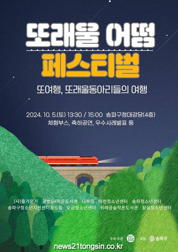 송파구(구청장 서강석)가 오는 10월 5일 오후 1시 30분부터 3시까지 구청 대강당에서 ‘2024년 어떰 페스티벌(페스티벌)’을 개최한다.