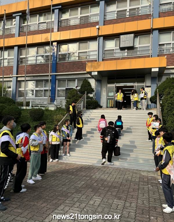 김포초등학교(교장 최재숙)는 8일 아침 8시 40분부터 9시까지 학생들의 등교 시간에 맞추어 학생자치회 주관으로 올바른 언어 사용 및 우리말 사랑을 위한 캠페인 행사를 열었다.