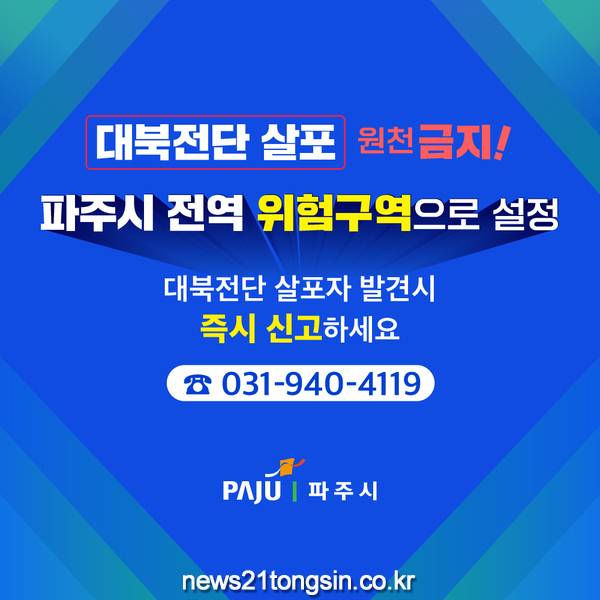 한편 파주시는 시민들에게 대북전단 살포 행위자 발견 시 24시간 운영되는 파주시 상황실(☎031-940-4119)로 신고해줄 것을 당부했다.