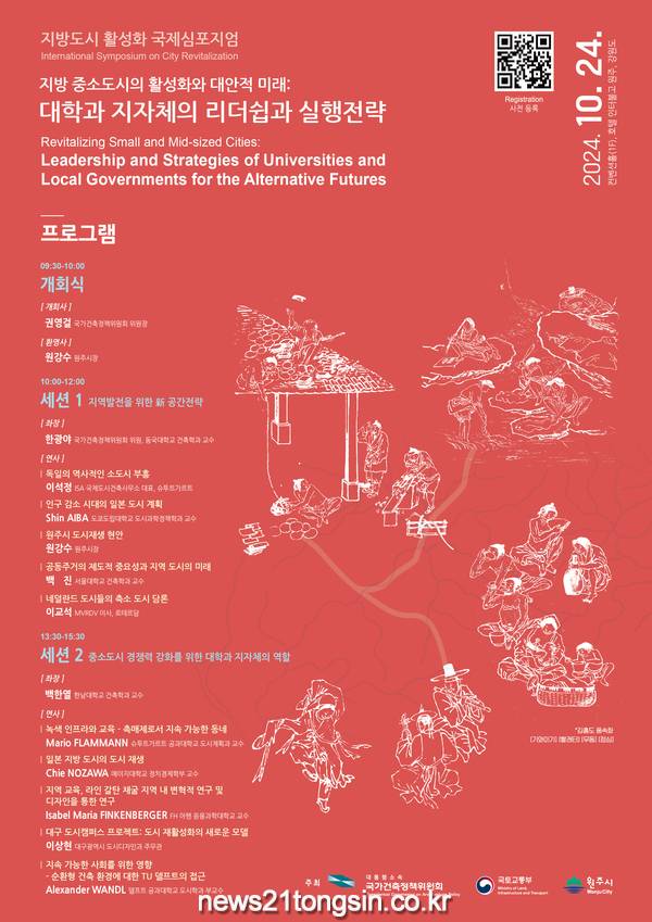 □ 국가건축정책위원회가 주최하고 국토교통부와 원주시가 후원하는 지방도시 활성화 국제심포지엄이 오는 24일(목) 오전 9시 30분 호텔 인터불고 원주에서 개최된다.