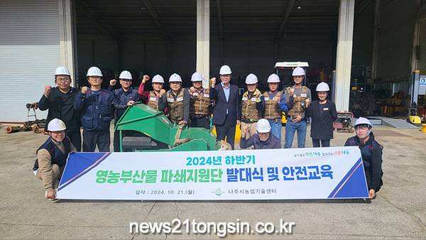 ▲  영농부산물 파쇄지원단 발대식전라남도 나주시는 지난 21일 영농부산물 안전처리를 위한 하반기 영농부산물 파쇄지원단 발대식을 갖고 운영을 재개한다고 24일 밝혔다.