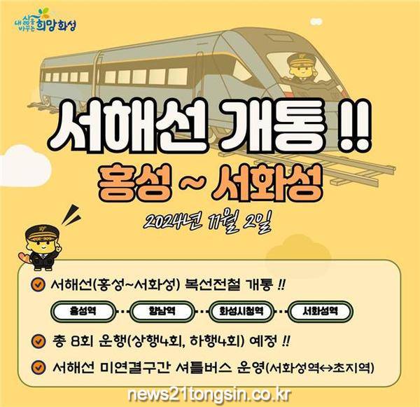 11월 2일 개통 시 홍성역에서 6시 50분 첫 열차를 시작으로 서화성역에서 19시 29분 마지막 열차가 운행되며, 상행 4회, 하행 4회 총 8회 운행될 예정이다.