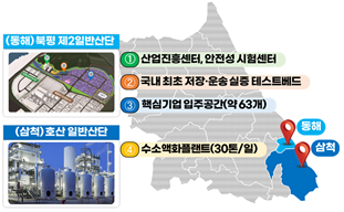 ○ 삼척특화지구는 삼척 호산일반산업단지(원덕읍 호산리 일원)로면적은 17,589㎡이며, 수소공급시설 구축과 수소액화 기술개발을 지원하여 전 지역에 액화수소를 안정적으로 공급할 계획이다.