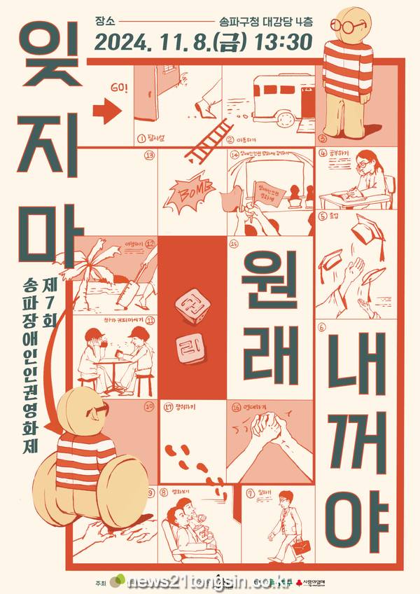 송파구(구청장 서강석)가 오는 11월 8일(금) 오후 1시 30분 구청 대강당에서 제7회 ‘송파장애인인권영화제’를 개최한다고 밝혔다.