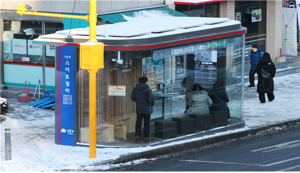 ‘스마트 냉온열의자’도 운영하여 버스정류장에 대기하는 주민들의 추위를 녹인다. ‘스마트 냉온열의자’는 관내 총 139개가 설치되어 있으며, 대기 온도가 20℃ 이하로 내려가면 자동 온열 기능이 작동하고, 표면 온도가 40℃를 유지해 한파로부터 교통약자를 보호한다. 비닐 텐트형 추위 대피소인 ‘온기누리소’도 유동인구가 많은 버스정류장 인근에 총 41개 설치되어 찬바람을 막는다.