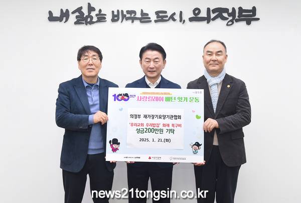 의정부시(시장 김동근)는 1월 21일 의정부 재가장기요양기관협회(회장 성종현)가 ‘우리교회 우리밥집’에 화재복구비로 200만 원을 기부했다고 밝혔다.