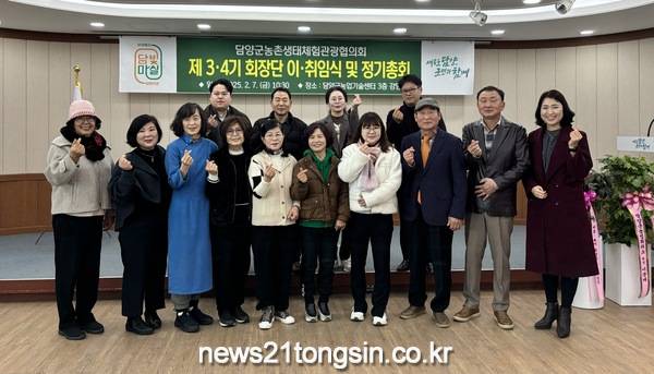 ▲  사진=담양군담양군 농촌생태체험관광협의회는 지난 7일 담양군 농업기술센터 강당에서 정철원 군의장님과 회원 등 40명이 참석한 가운데 제3·4기 회장 이취임식을 개최했다.