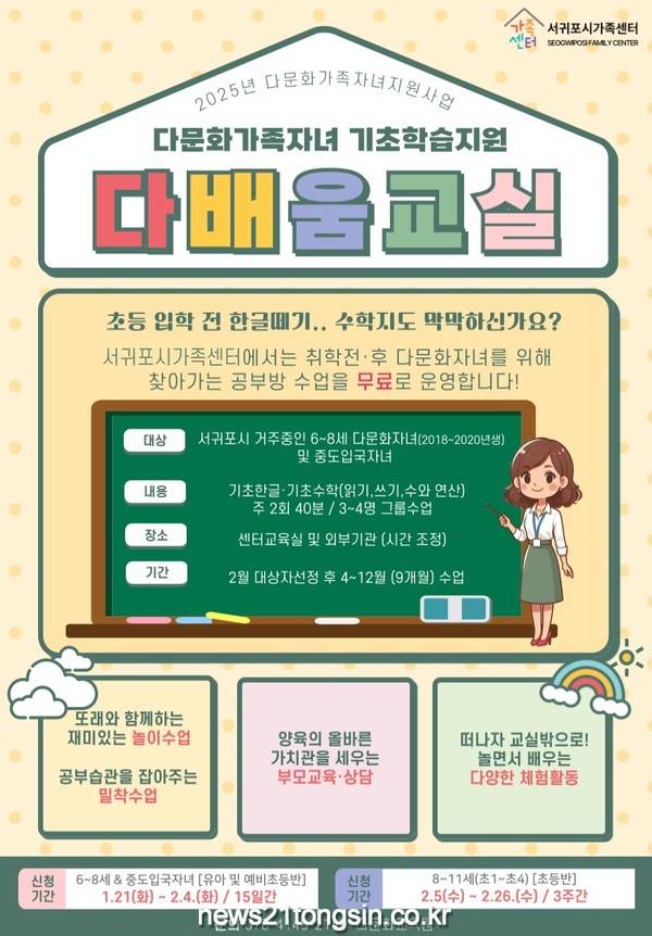 ▲ 사진=서귀포시서귀포시와 서귀포시가족센터는 2025년 다문화가족자녀지원사업 기초학습지원 프로그램을 운영한다.