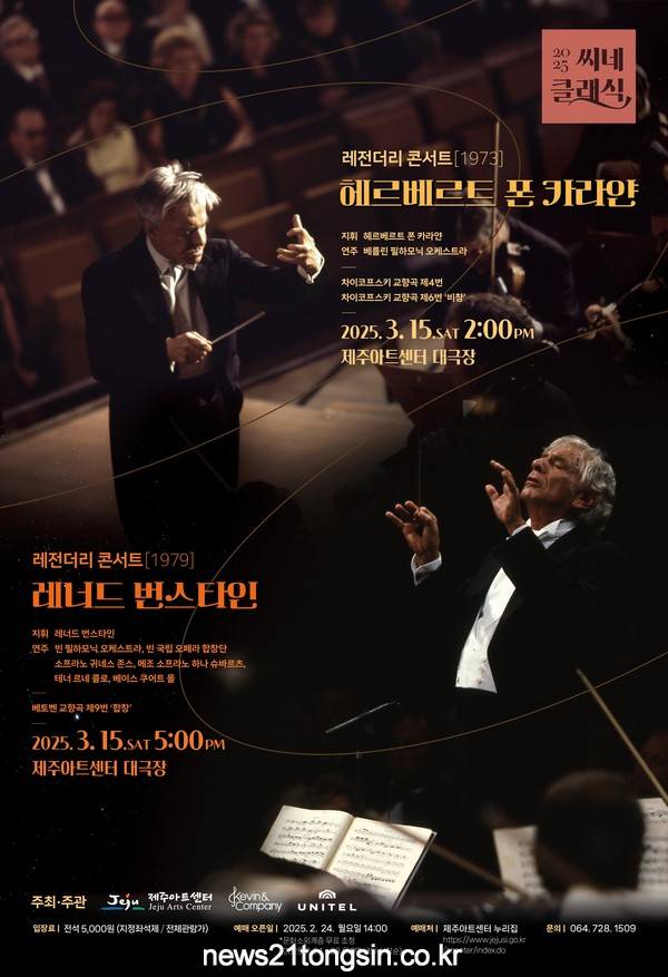 ▲ 사진=제주시 제주아트센터는 3월 15일(토) 오후 2시와 5시에 레전더리 콘서트 영상‘카라얀과 번스타인’을 상영한다.