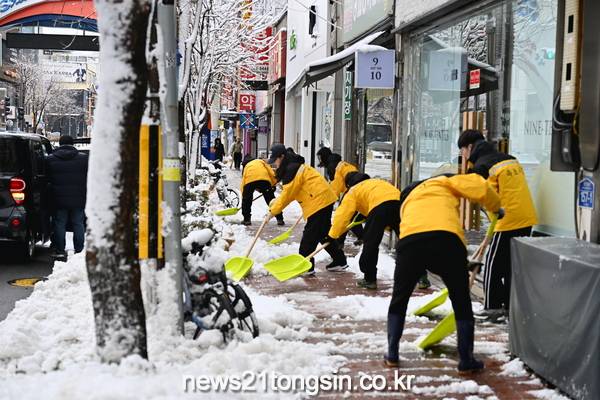 한편, 마을제설단과 동제설단 등 시민들의 마을안길, 이면도로 등 제설 취약 구간의 제설작업도 이어지며 도로 소통 안정화에 속도를 내고 있다.