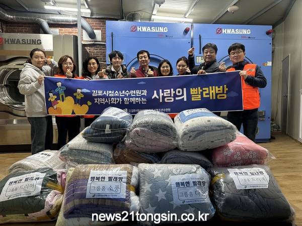 ‘우리 동네 행복한 빨래방’은 김포시청소년수련원의 대표적인 사회공헌활동으로 지역사회의 취약계층을 지원하기 위해 2017년부터 지속적으로 운영하고 있으며, 평소 이불 세탁에 어려움을 겪는 그룹홈, 독거노인, 한부모가정 등을 대상으로 수련원의 대형 세탁시설을 활용해 세탁물 세탁, 건조, 포장까지 원스톱 서비스를 제공하는 사업이다.