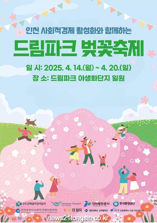 ‘드림파크 벚꽃축제’는 많은 시민들이 야생화를 감상하기 위해 찾는 대표적인 지역 축제로, 올해는 수도권매립지관리공사의 요청에 따라 인천시 사회적경제기업들도 함께 참여하게 됐다. 이번 행사는 지역 축제와 사회적경제의 가치를 결합해 시민들에게 더욱 풍성한 즐길 거리를 제공할 예정이다.