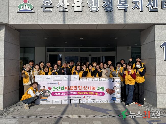 ▲사진제공:울주군청 울주군 온산읍 지역사회보장협의체(공동위원장 이준호, 박광철)가 16일 지역 내 저소득 취약계층 100세대에 김장김치와 전달하는 ‘따뜻한 겨울나기 지원사업’을 실시했다.이번 사업은 지역사회 내 소외계층에게 따뜻한 마음과 식재료를 함께 전달하기 위해 추진됐다. 사회복지공동모금회 착한가게 지정기탁금 ...