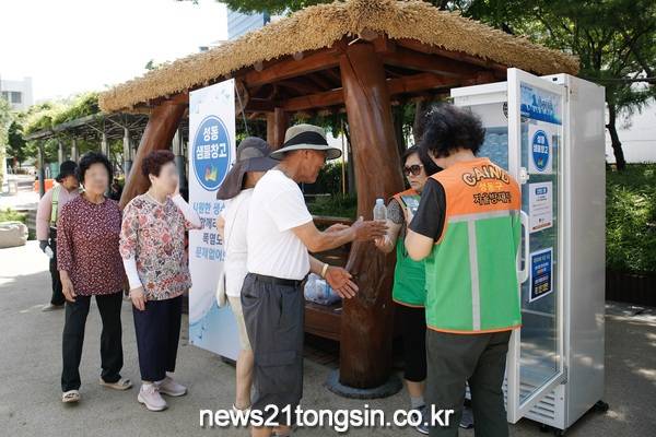 아울러, 야외활동 중 온열질환 및 탈수 증상 방지를 위해 시원한 생수를 제공하는 ‘성동 샘물창고’는 7월 9일부터 운영을 시작했다. 오전 9시와 15시, 하루에 2번 안전‧폭염 취약계층에게 무라벨 생수를 지급하며 오는 8월 21일까지 운영된다.
