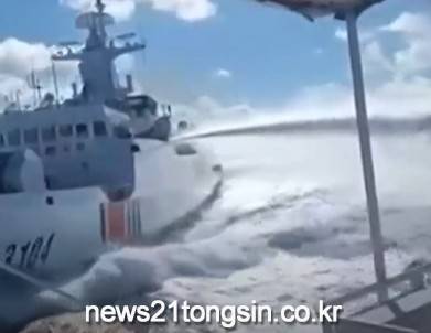 ▲ 사진=KBS NEWS 영상 캡처필리핀 해경선을 빠른 속도로 뒤쫓는 중국 해경선.