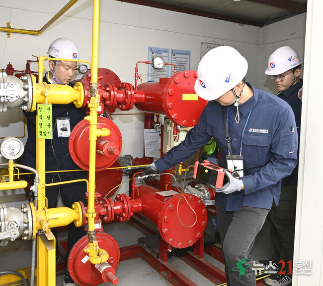 사진=한국공항공사, 지난 15일 내부 시설 전문가와 한국가스안전공사의 가스안전진단 전문가로 구성된 합동점검반이 김포공항 가스공급시설에 대한 특별점검을 실시하고 있다.