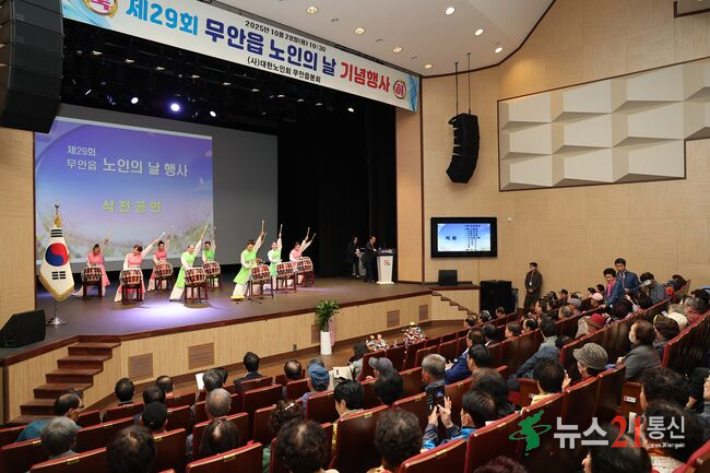 [뉴스21 통신=박철희 ] 지난 28일 승달문화예술회관 대공연장에서 ‘제29회 무안읍 노인의 날 행사’를 성황리에 개최했다고 밝혔다. 이번 행사는 (사)대한노인회 무안읍분회(회장 김하웅)가 주관했으며, 경로의 달을 맞아 지역 어르신들의 헌신에 감사하고 존경을 전하는 뜻깊은 자리로 마련됐다.이날 행사에는 김산 무안군수, 이호성 .