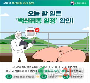 도는 기존 4월·10월 정례 접종 일정을 조정해, 지난 3월 전남 지역 구제역 발생 이후 올해부터 3월과 9월로 시기를 앞당겼다. 소규모 농가는 시군 공수의사 등 전문 인력이 접종을 지원하며, 전업 규모 농가는 자가접종을 원칙으로 한다. 고령 등으로 자가접종이 어려운 경우에는 도 자체사업을 통해 지원한다.