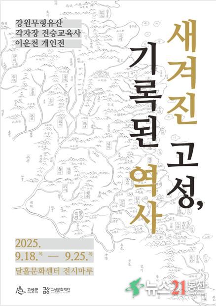고성문화재단(이사장 함명준)은 강원특별자치도 무형유산 각자장 전승 교육사 이운천 작가의 개인전 「새겨진 고성, 기록된 역사」를 9월 18일(목)부터 25일(목)까지 8일간 달홀문화센터 1층 전시마루에서 개최한다.