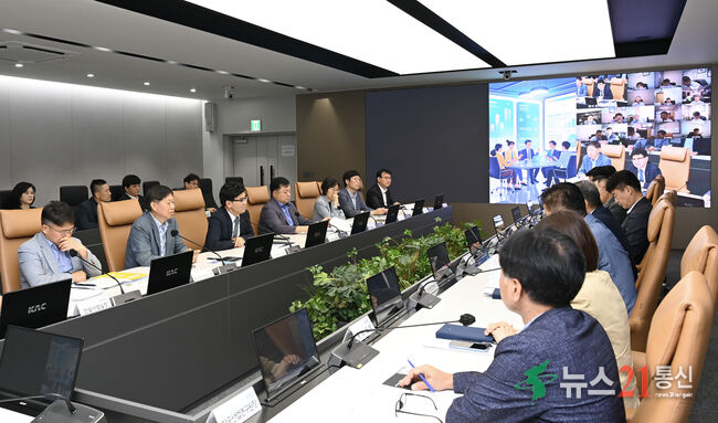 사진=한국공항공사, 지난 15일 이정기 사장직무대행(왼쪽 앞줄 왼쪽에서 세 번째)이 임원 및 전국공항장들과 자회사 단체행동에 대비한 점검 회의를 진행하고 있다.
