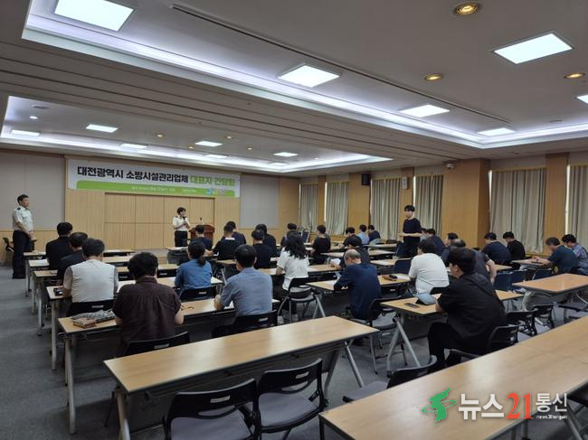 대전소방본부(본부장 김문용)는 9월 17일(수) 오전 10시 대전시청 3층 세미나실에서 관내 소방시설관리업체 43개소 관계자와 함께 안전 점검 강화를 위한 소통 간담회를 열었다. 이번 간담회에서는 ▲「소방시설법」 개정 예정 사항 및 정책 방향 ▲표본조사 결과 공유를 통한 성실 점검 당부 ▲공동주택 세대점검 관련 현안 등 현장의 실무와 직결된 논의가 진행됐다.