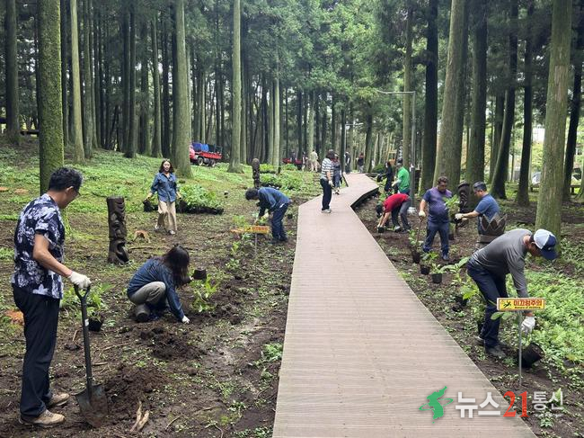 절물생태관리소는 지난 16일 ‘수국 식재 행사’를 열고 삼나무 숲길 주변에 수국을 심었다고 18일 밝혔다. 이번 행사는 숲의 경관을 풍성하게 하고, 휴양림을 찾는 시민과 관광객에게 새로운 볼거리를 제공하기 위해 마련됐다.