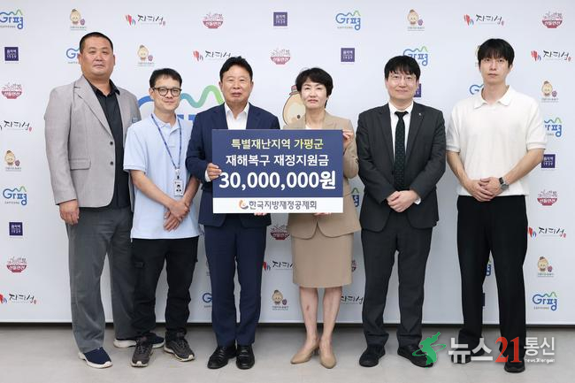 가평군은 17일 군수실에서 한국지방재정공제회로부터 특별재난지역 재정지원금 3,000만원을 전달받았다고 밝혔다.
