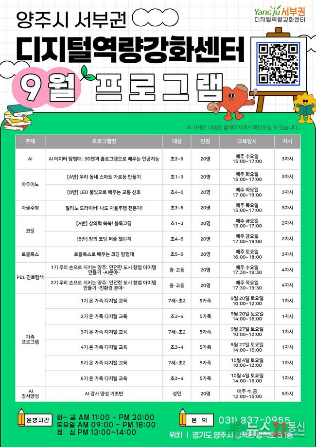 양주시가 최근 서부권 지역 주민들의 디지털 교육 거점 역할을 수행할 “서부권 디지털역량강화센터”가 본격 운영에 들어갔다고 밝혔다.