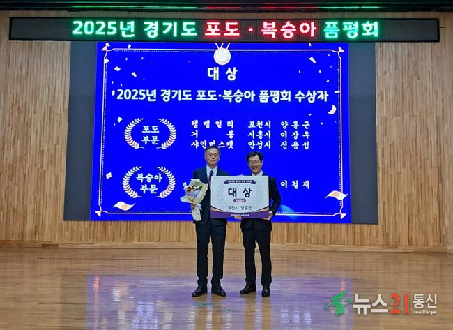 포천시(시장 백영현)는 지난 17일 경기도농업기술원이 주관한 2025년 「경기도 포도 품평회」에서 내촌면 양훈근 농업인이 ‘캠벨얼리’ 부문 대상을 수상했다고 밝혔다.