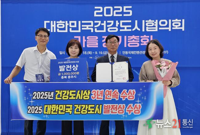 충주시는 2023년부터 매년 다양한 주제로 3년 연속 대한민국 건강도시상을 받으며 ‘대한민국을 대표하는 건강도시’로서 위상을 굳건히 다지고 있다.