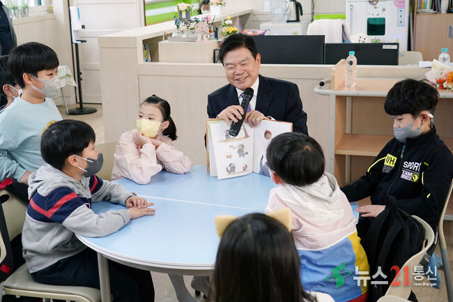 안평초등학교 '행복독서 책 읽어주기' 활동에 참석한 이필형 동대문구청장 [사진=동대문구]