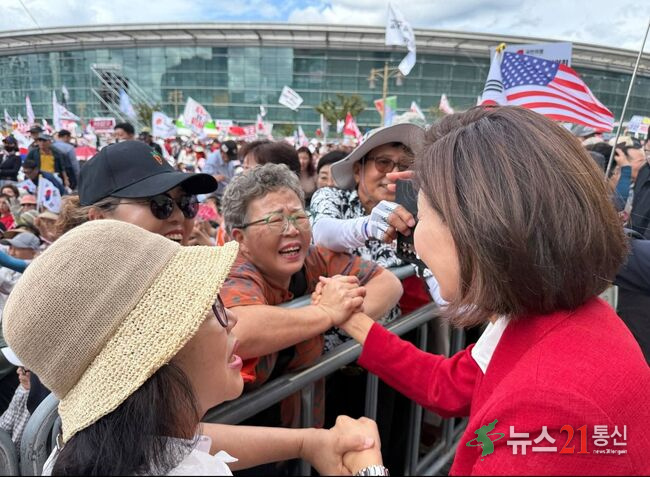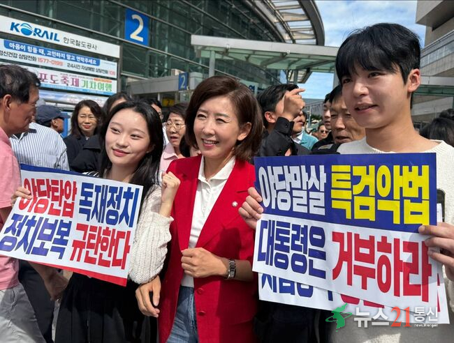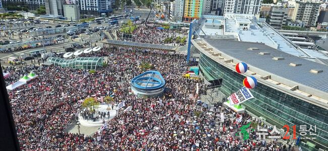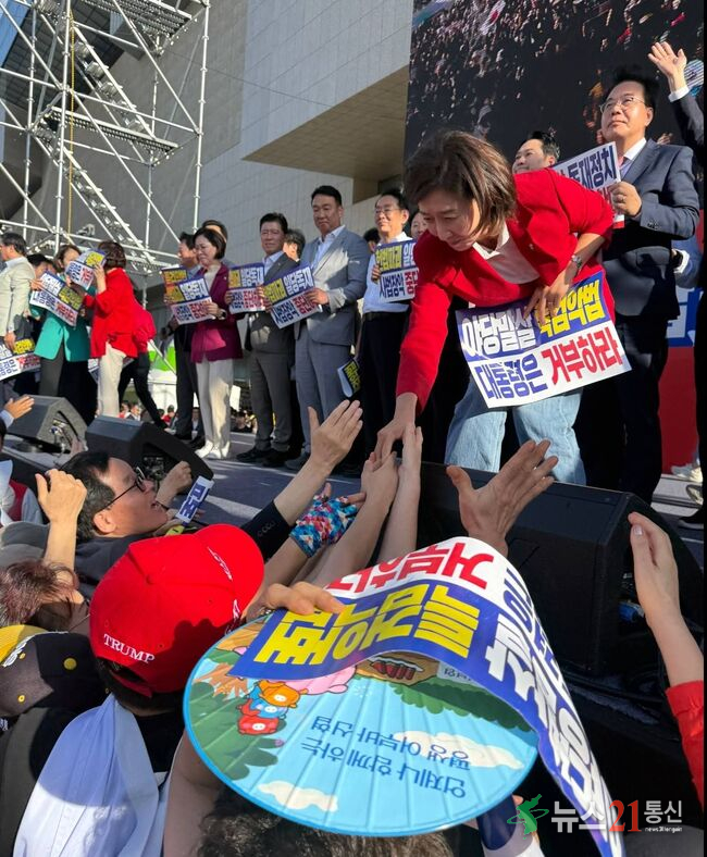 국민의힘은 21일 대구 동구 동대구역 광장에서 ‘야당탄압·독재정치 국민 규탄대회’를 열고 현 정부와 여당을 강하게 비판했다.