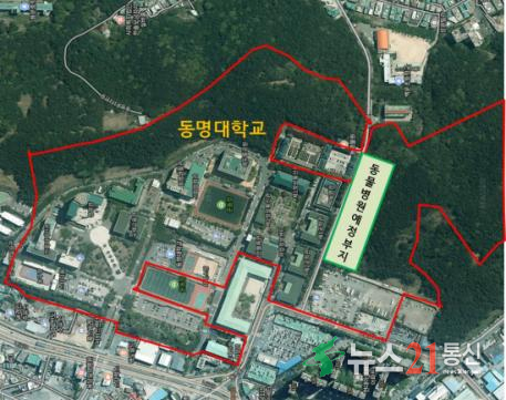 위 치 (동명대학교 내) [사진=부산시]부채납한 부지에 경상국립대가 건물을 지어 운영하는 임대형 민자사업(BTL) 방식으로 추진된다. 부지 면적은 1만 3,300㎡, 연면적 9,213㎡(지상 4층·지하 1층)으로 서울대 수의과대학 동물병원의 1.6배에 달한다.