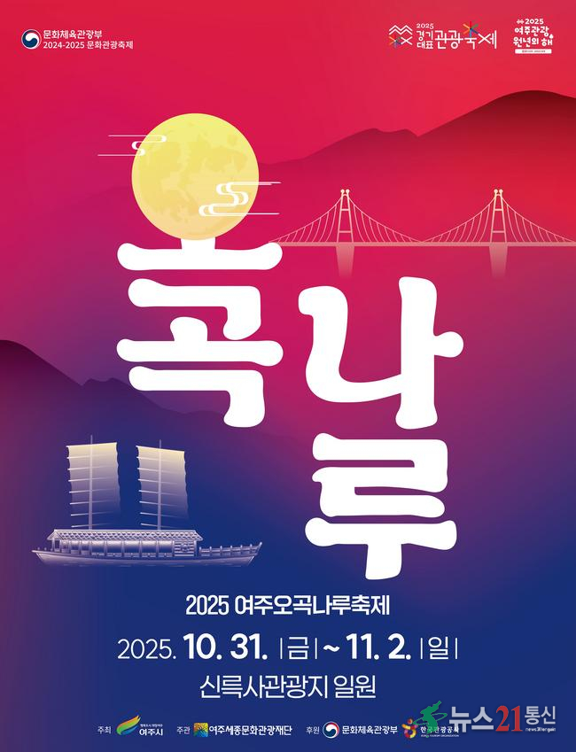 올 가을, 여주가 세계와 만나는 풍성한 축제의 장이 열린다. 경기대표관광축제이자 문화관광축제로 선정된 ‘2025 여주오곡나루축제’가 오는 10월 31일(금)부터 11월 2일(일)까지 3일간 여주 신륵사 관광단지 일원에서 개최된다.