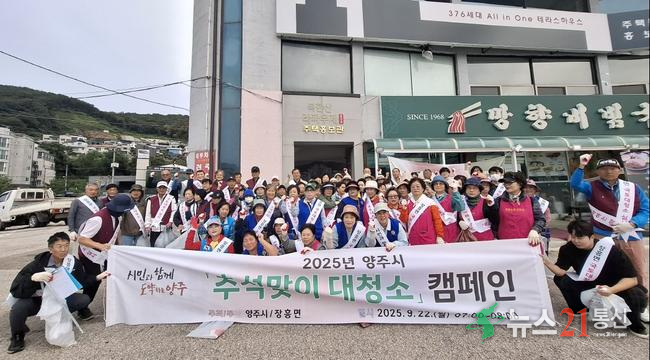 양주시 장흥면(면장 나태인)이 지난 22일 추석을 맞이하여 고향을 찾아오는 귀성객과 주민들을 위해 대청소를 실시했다.