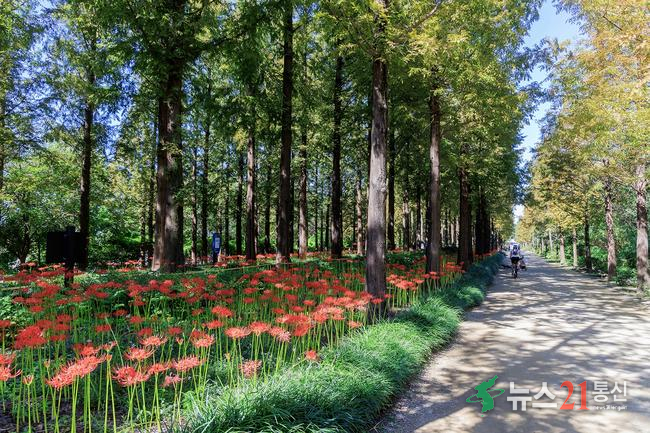 난지도 상사화는 올해도 메타세쿼이아 숲길을 붉게 물들이며 방문객들을 맞이할 예정이다.