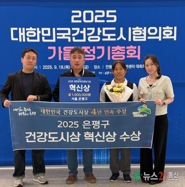 서울 은평구(구청장 김미경)는 지난 18일 안동에서 열린 ‘2025 제10회 대한민국 건강도시상 공모전’에서 혁신상을 받았다고 밝혔다.
