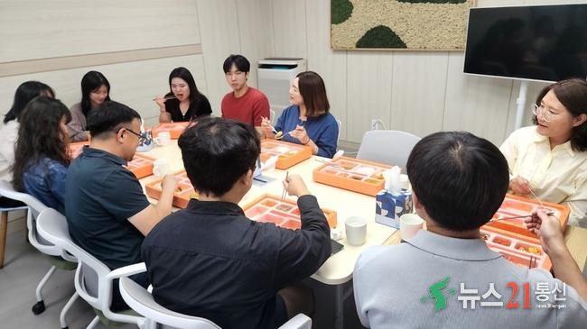 점심시간에 배우는 ‘이색 친절교육’ [사진=서귀포시청 제공]서귀포시는 지난 9월 22일 시청 도시락쉼터에서 강현수 복지위생국장을 비롯해 선배 공무원과 저연차 직원들이 함께하는 이색 친절교육 및 소통 프로그램 ‘도시락 토크’를 진행했다.