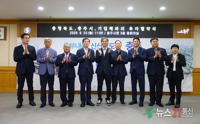사진=충주시충주시는 미래 먹거리 산업 선점을 위해 바이오와 친환경 분야 대규모 투자를 이끌어냈다. 시는 22일 충주시청에서 ㈜휴바이오제약, ㈜글로벌바이오매스에너지와 총 1,303억 원 규모의 투자협약(MOU)을 체결했다고 밝혔다.