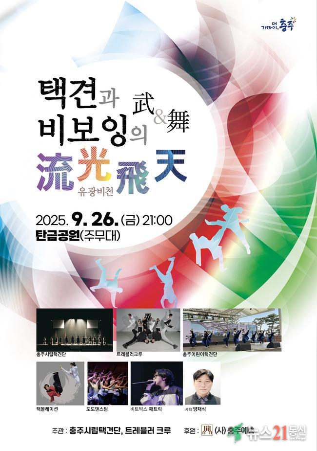 공연에는 충주시립택견단, 댄스팀 도도댄스, 트레블러 크루, 충주어린이택견단 등이 참여해 세대를 아우르는 무대를 펼친다. 특히 비트박서 패트릭이 독창적인 음향과 리듬으로 공연의 흥을 돋우며, 한국택견협회 양재식 박사가 재담으로 사회를 맡아 현장 분위기를 이끈다.