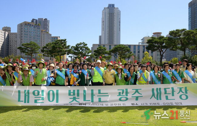 대한민국 새단장 캠페인 광주광역시는 23일 상무지구 일원에서 시민단체, 자원봉사자, 공무원 등 450여명이 참여한 가운데 시가지 생활쓰레기와 담배꽁초 등을 수거하는 ‘빛나는 광주 새단장’ 청결 활동을 실시했다.