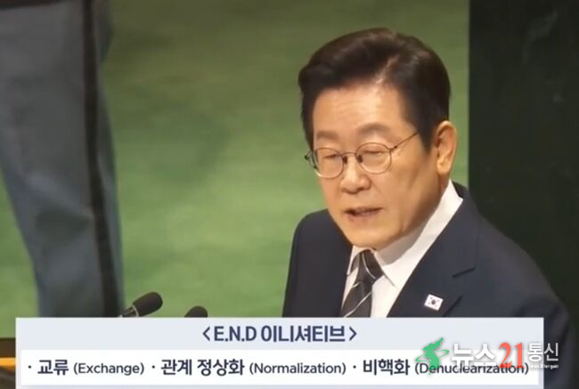 이재명 대통령이 9월23일(현지시각) 뉴욕에서 열린 제80차 유엔 총회에서 연설하고 있다. (사진=mbc화면 캡쳐)