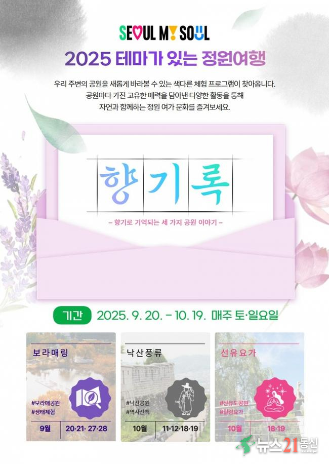 이번 프로그램은 보라매공원, 낙산공원, 선유도공원에서 각기 다른 주제로 진행되며, 시민들이 일상 속에서 공원의 역사·문화·생태를 새롭게 경험할 수 있도록 기획됐다.