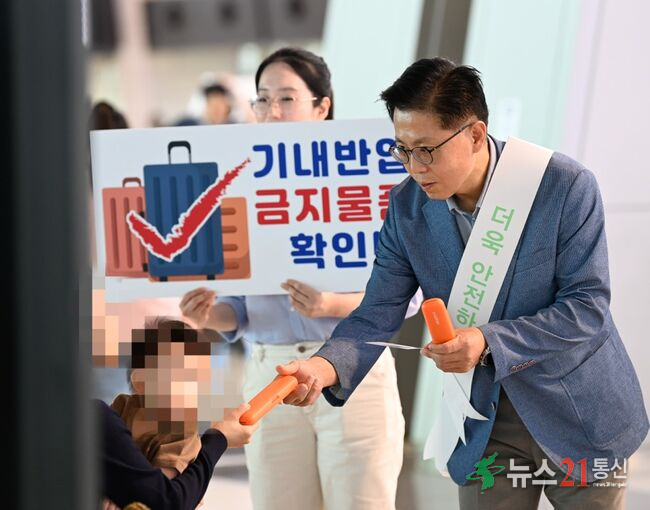 이날, 김복근 안전보안본부장은 김포공항을 찾은 이용객을 대상으로 보안검색 주요 적발품목인 라이터, 보조배터리 등 기내반입금지물품과 국제선 액체류 휴대 기준(개별용기당 100ml 이하로 1인당 총 1L)등을 안내했다.