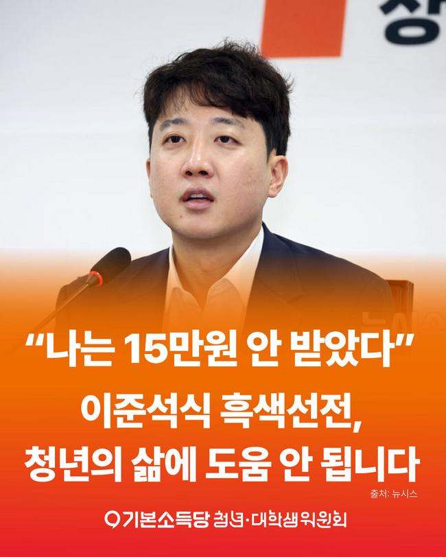 “나는 15만원 받지 않았다”, 아직도 윤석열식 경제 정책에 향수를 느끼는 이준석 의원에 안타까움을 감출 길이 없다. 부자감세와 긴축밖에 모르던 윤석열 3년이 망친 국민의 삶에 민생회복지원금은 긴급 처방이자 기본선의 회복이었다. 국민들이 체감하는 변화를 모르는 척이라도 하듯, 이준석 의원은 ‘포퓰리즘’이나 ‘미래 세대의 빚’ 같은 흑색선전을 퍼붓기 바쁘다. 이준석 의원은 다시 윤석열 3년, 내수와 민생 붕괴로의 복귀를 꿈꾸는 것인가?