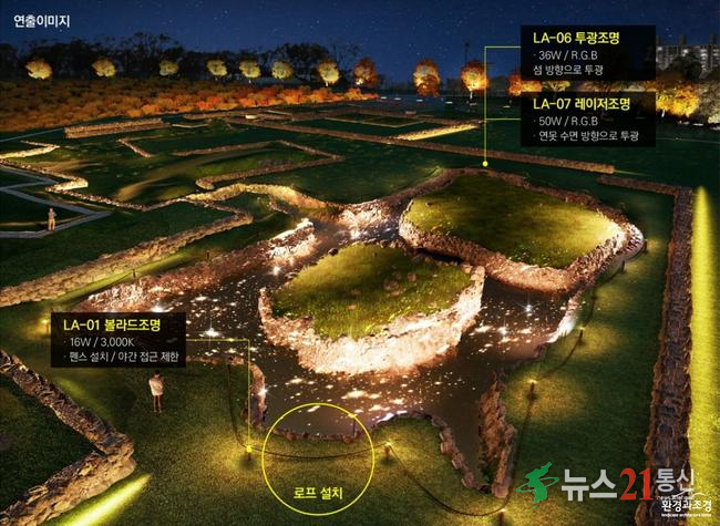 경주 신라 왕경의 정원 유적지인 구황동 원지가 정비와 경관조명 설치를 마치고 다음 달 준공을 앞두고 있다.
