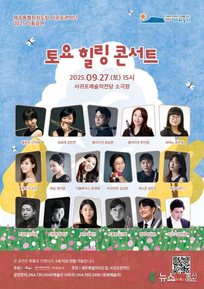 서귀포시가 오는 9월 27일(토) 오후 3시, 서귀포예술의전당 소극장에서 서귀포관악단 기획공연 「토요힐링콘서트」를 연다.